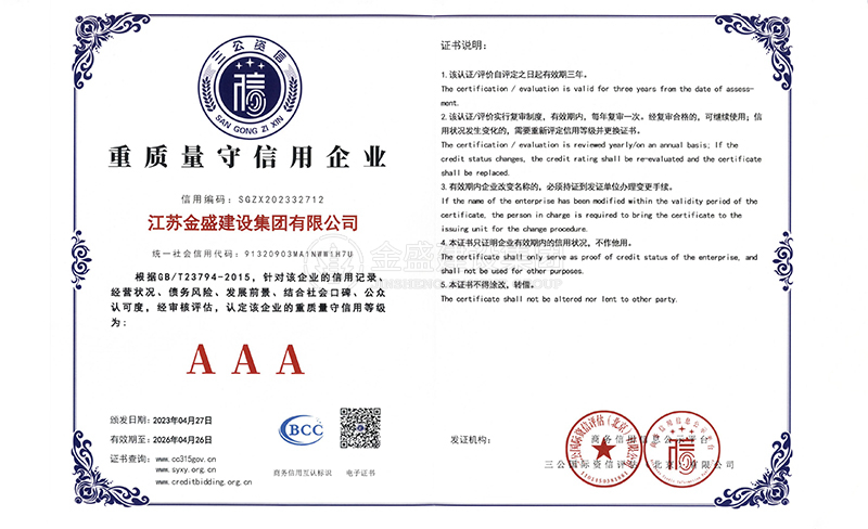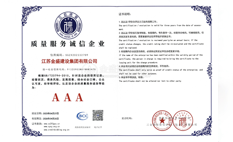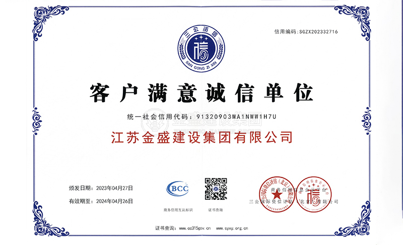 • 2007年江蘇省質量信得過安全穩(wěn)定施工企業(yè)